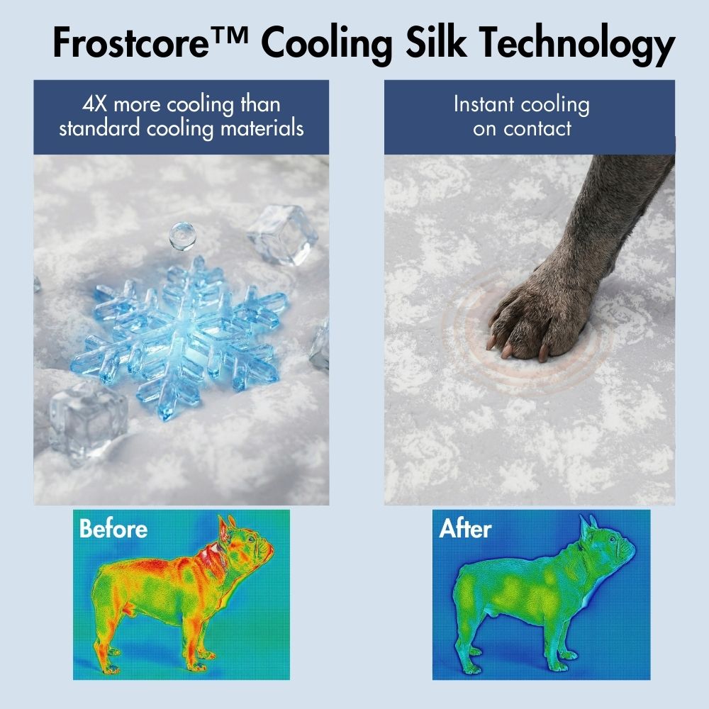 Made with Frostcore™ cooling fabric, the surface pulls heat away on contact to deliver an instant, refreshing cool feel—perfect for hot summer days and overheated pups.