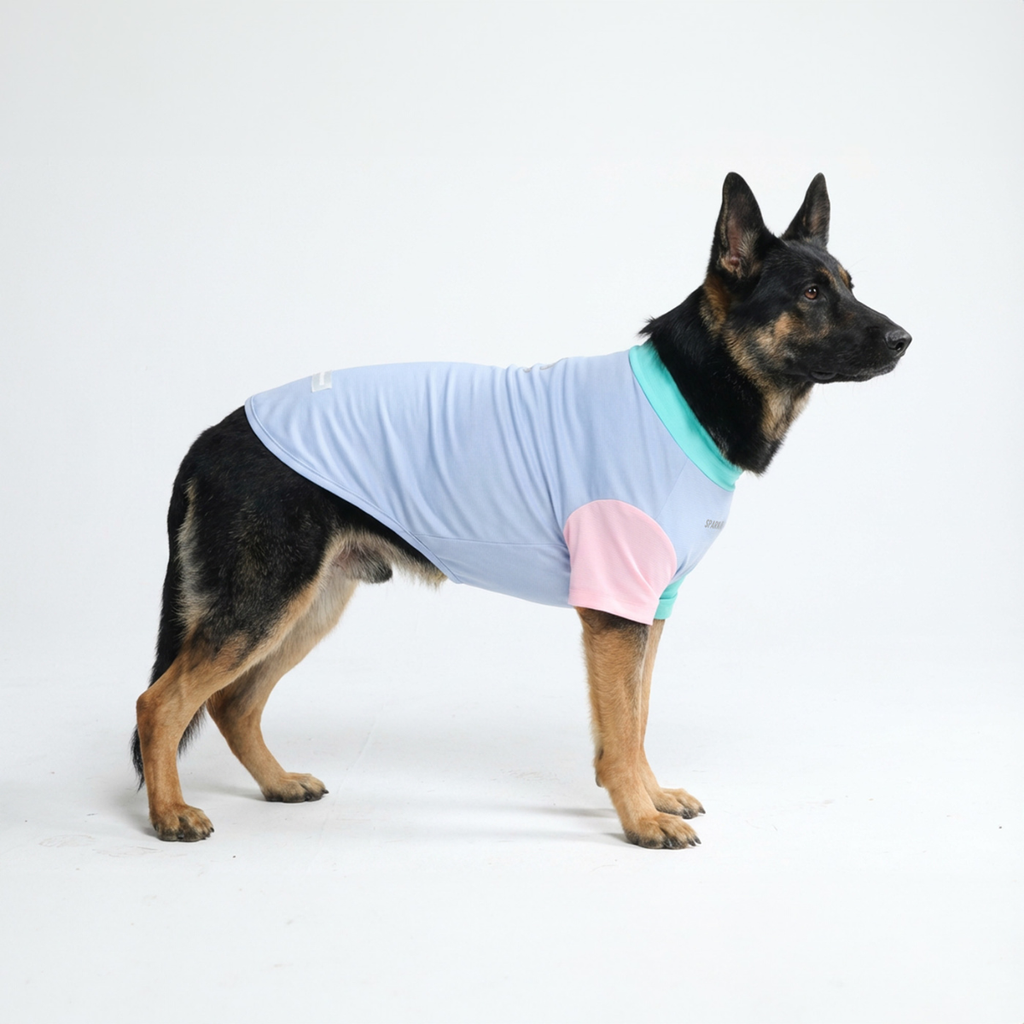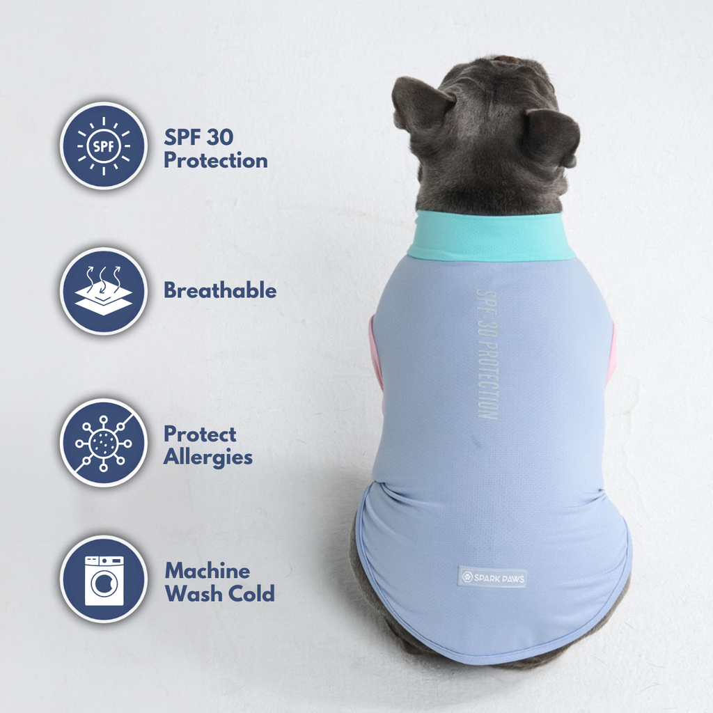 Protect your dog from the sun with our SPF 30/UPF 30 Sun-Block Dog T-Shirt, blocking 96%+ of harmful UVB rays while keeping your dog clean and allergen-free.