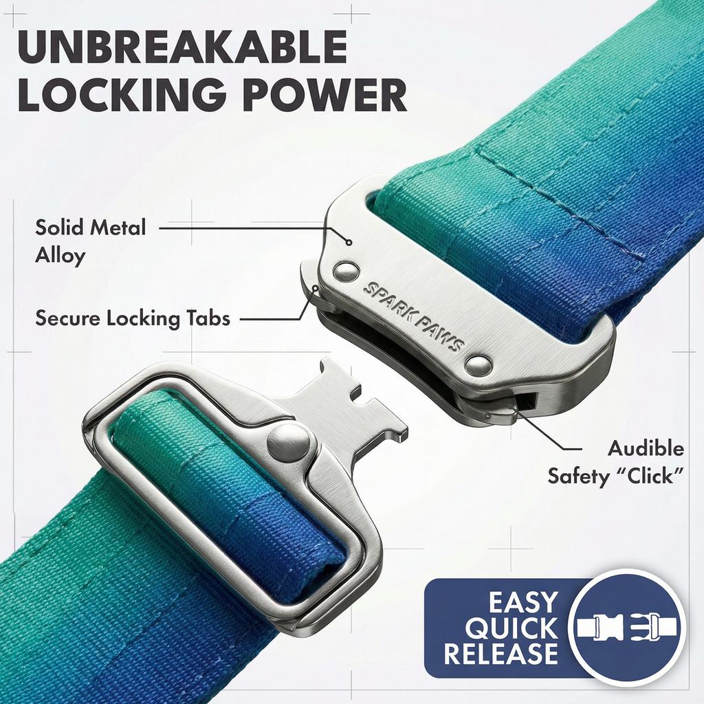 • Snelsluitende gesp - Makkelijk aan en uit te doen, getest met extreme trekkracht.