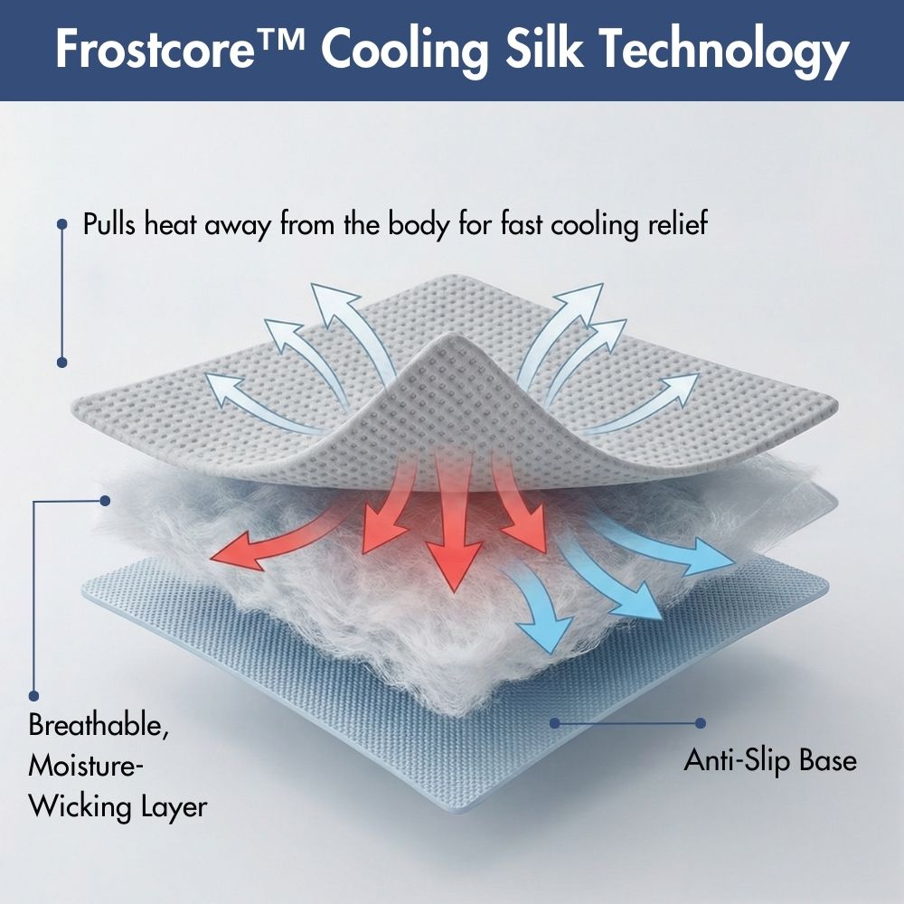 Gemaakt met Frostcore™ koelstof; het oppervlak onttrekt direct warmte bij contact voor een onmiddellijk, verfrissend koel gevoel – perfect voor warme zomerdagen.