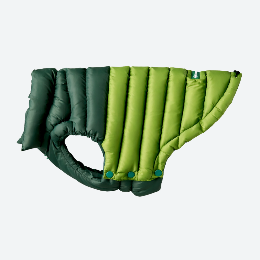 Upgrade de wintergarderobe van je hond met de PuffShield Winterjas. Een mix van nostalgische Y2K-esthetiek en moderne technische prestaties. Dit tweekleurige vest met hoge kraag is ontworpen voor gebruiksgemak en om je hond warm en stijlvol te houden tijdens winterse wandelingen.
