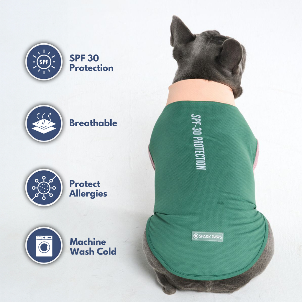 Bescherm je hond tegen de zon met ons SPF-30 Sun-Block Dog Tee Shirt, dat 97% van de schadelijke UVB-stralen blokkeert terwijl je hond schoon en allergeenvrij blijft.
