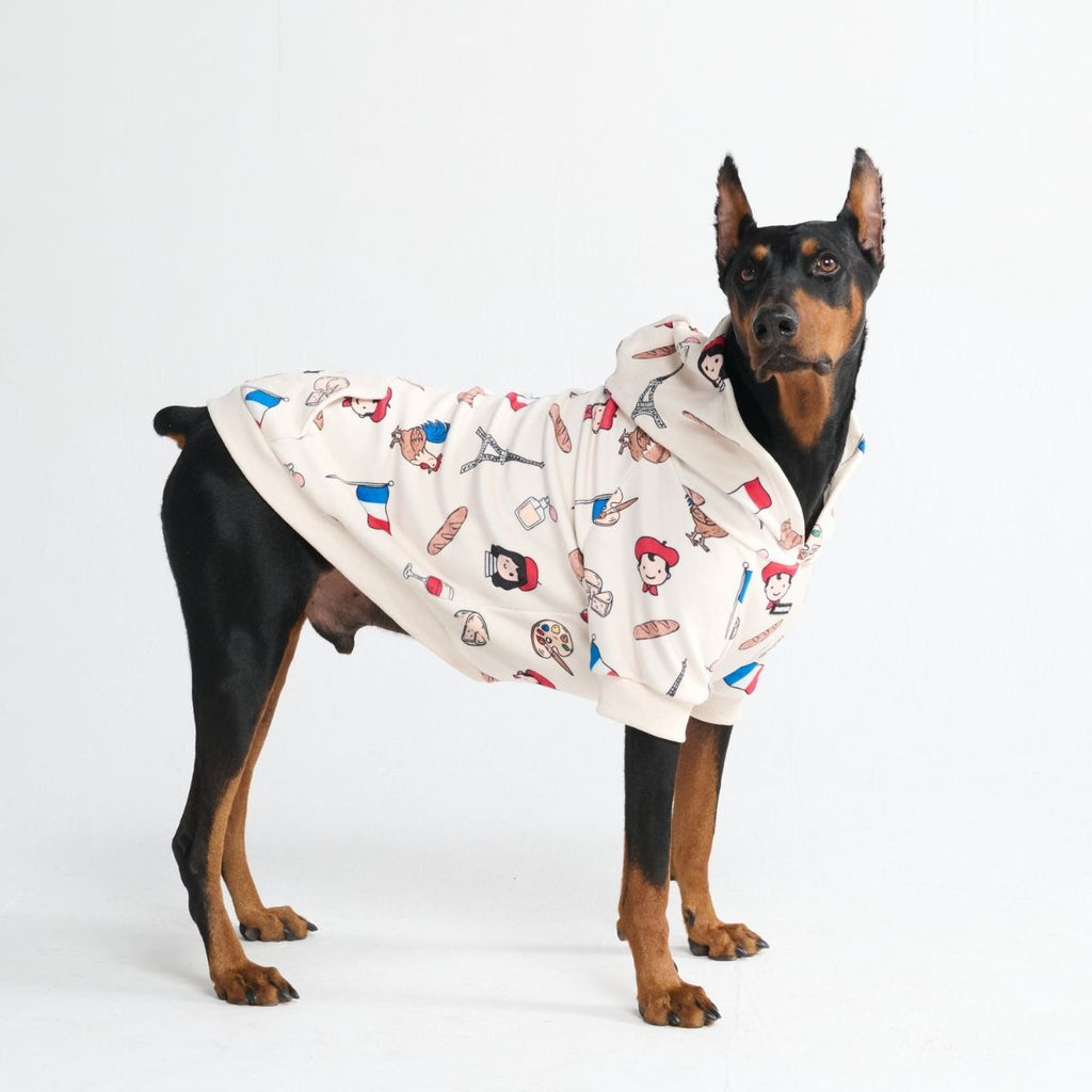 V: Past deze hoodie bij een hond met een brede borst, zoals een buldog?