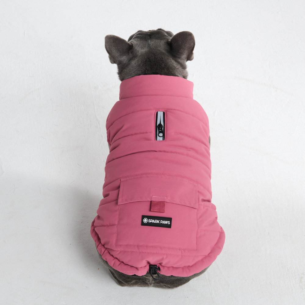 Deze gestroomlijnde, op techwear geïnspireerde parka houdt je hond droog en warm op de koudste winterdagen.